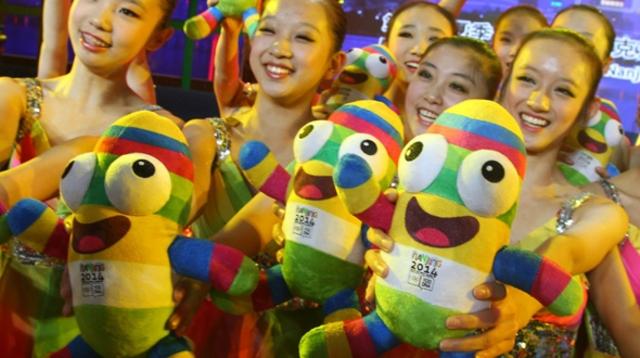 第二届夏季青年奥林匹克运动会吉祥物发布仪式在南京奥体中心体育馆隆重举行。据了解,南京青奥组委于今年2月至8月,通过全国 大学生广告艺术大赛征集吉祥物,来自全国27个分赛区,32个省、市、自治区的903所大中专院校,120万名青年学生参与了本次比赛。经学校、分赛区两 轮选拔,大广赛组委会共收到决赛作品2850件。经大赛评委会初评和复评,最终选出吉祥物候选作品5件。