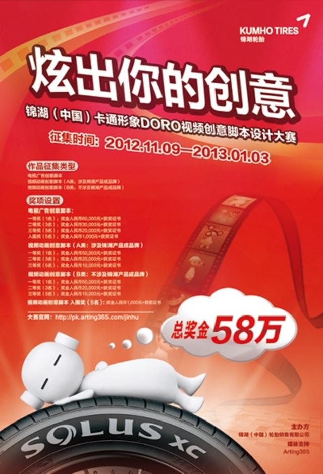 初冬墙裂推荐!——58万巨额奖金!!!纵情冰雪,乐在掌控,2012锦湖轮胎(中国)卡通形象DORO视频创意脚本设计大赛向你滚来!