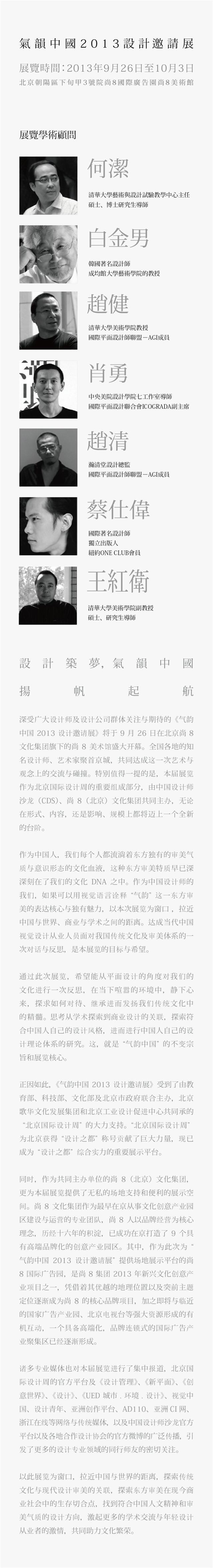 作为中国人,我们每个人都流淌着东方独有的审美气质与意识形态的文化血液,这种东方审美特质早已深深刻在了我们的文化DNA之中。作为中国设计师的我们,如果可以用视觉语言诠释“气韵”这一东方审美的表达核心与独有魅力,以本次展览为窗口 ,拉近中国与世界、商业与学术之间的距离。达成当代中国视觉设计从业人员面对我国传统文化及审美体系的一次对话与反思,是本展览的目标与希望。