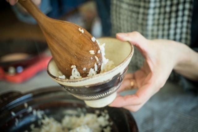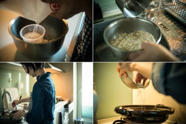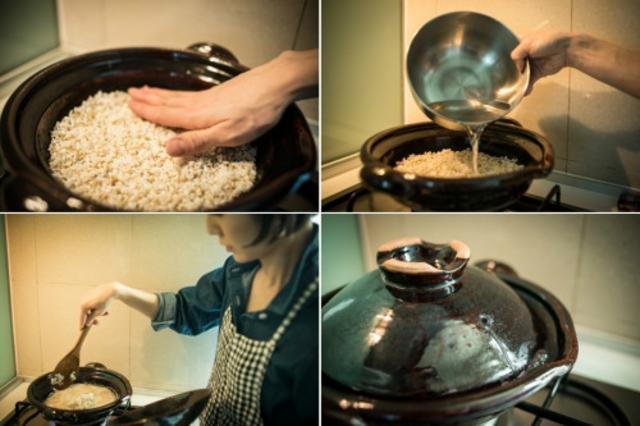 昌美告诉我,日本的灵魂食物(Soul Food)即是大米。日本人一直在不断地尝试和追求烹煮出更加美味的米饭的方法,有的人更是觉得米饭才是“主菜”,其他料理只是为了搭配米饭而做的。昌美做出美味米饭的利器,就是砂锅!即便生活繁忙,也不使用电饭煲,而采用最传统的方法来煮每一餐。按部就班地淘洗、浸泡、入锅焖煮,在洗米之后还要特别让米“休息”一下,使每一粒米都均匀地吸入水分之后再上锅,这么用心做出来的米饭,怎么可能不好吃呢?
