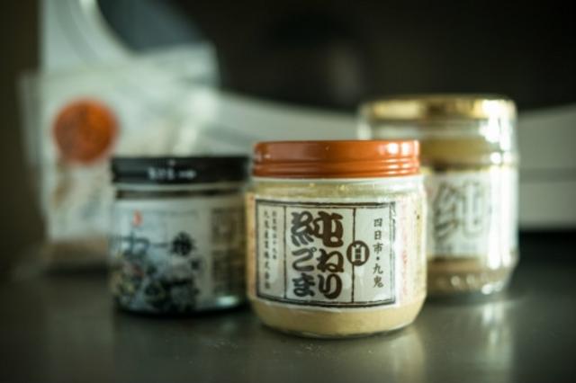 ④七味粉:京都祗园原了郭的“黑七味”,装在木头小罐子里,上端有木销可拔掉撒粉。