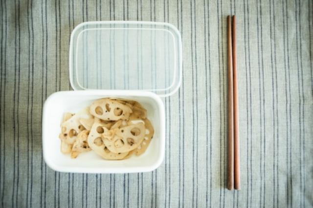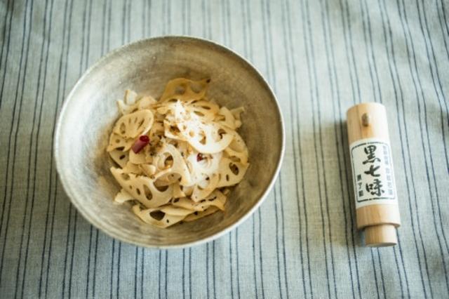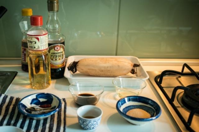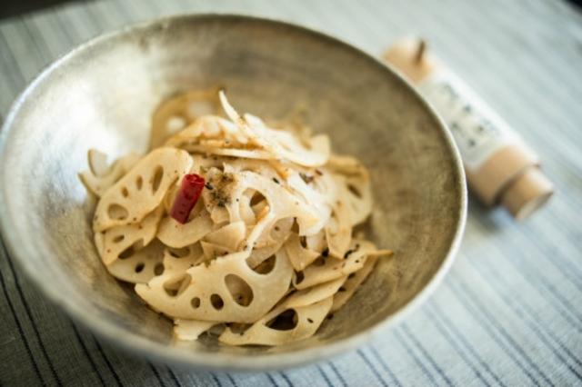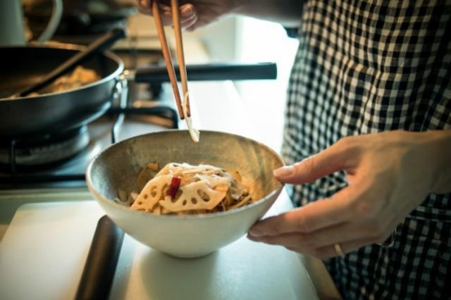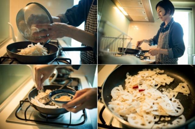 昌美向我们解释,“金平(きんぴら)”是指以酱油、糖、七味粉等调味,咸甜口味的小炒菜,是日本传统料理方式中常见的一种。而“常备菜”则是做出一次之后储存在密封容器内,之后的每餐中都可以作为副菜的小菜,凉热皆宜。今天昌美招待我们的这道金平藕根,就是她家里经常作为常备菜的一道。