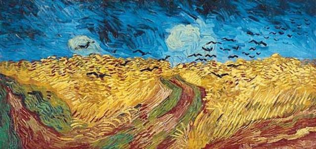 《麦田群鸦》蔑视了一切传统风景画的绘画规则,它没有透视,没有纵深,没有所谓的消失点,事实上,我们的眼睛只是随着他的笔触及色块在翻滚。它或许就是一 张梵高的心灵地图,大胆的颜色,黄蓝补色对比所带来的冲击力,既给人一种压抑,但同时又带来一种极大的喜悦。这种只忠实自己内心体验的绘画,对后来的野兽 派及表现主义绘画都产生了直接的影响,他的作品风格也不同于前期那些主流的印象派,他没有过多地迷恋在光与影的游戏中,虽然在归类上他的作品被称作“后印 象派风格”。