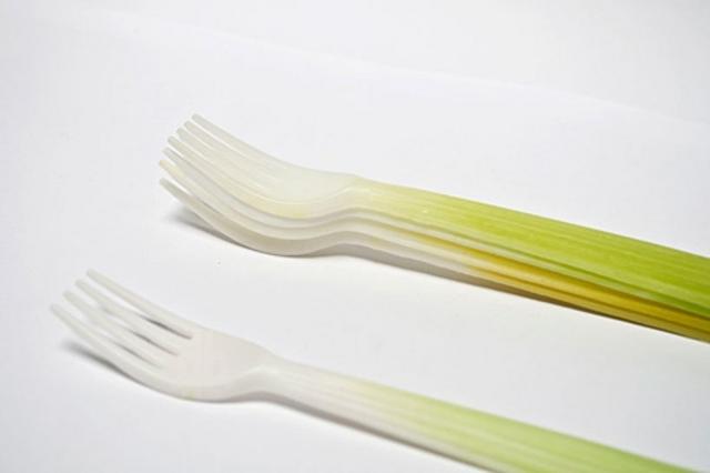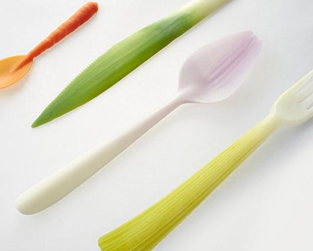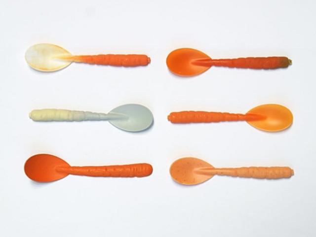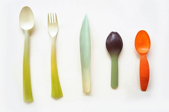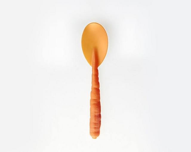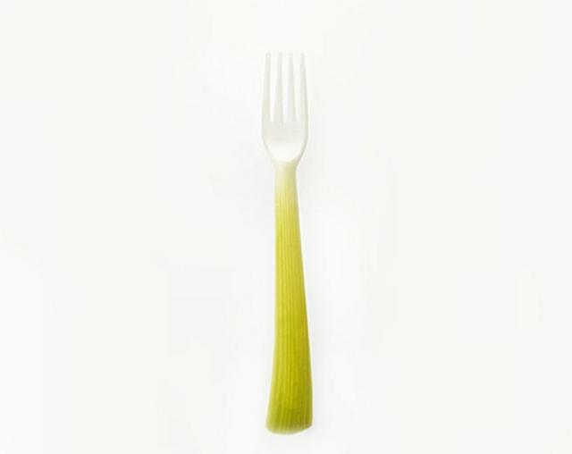 来自正在瑞士洛桑求学的设计系邓同学,蔬菜餐具(Graft Tableware)并不是蔬菜,但是,它们一定会让你联想起这些清新多汁的玩意:据说采用了从植物脂肪或者淀粉等物质中提取的所谓生物塑料材质(PLA)制作,对人体无毒,且可以完全地生物降解。但邓的创意中最棒的部分在于,每种餐具的造型,都仿佛是用某种蔬菜直接雕刻而成,比如说,芹菜茎一样的叉子,茴香杆一般的餐刀,以及,恰似胡萝卜的一把勺子~