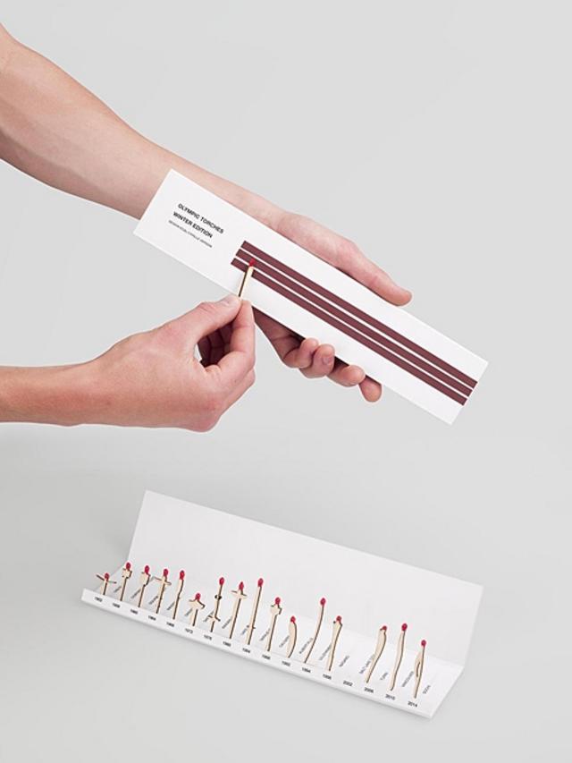 2、奥运火柴:每一根火柴都是一届奥运会或者冬奥会火炬的造型,按年排列。而火柴的擦皮,则是百米跑道的样子,用“火炬”在上面一擦,呲的一声,如同百米决赛的发令枪一般,相当带感。