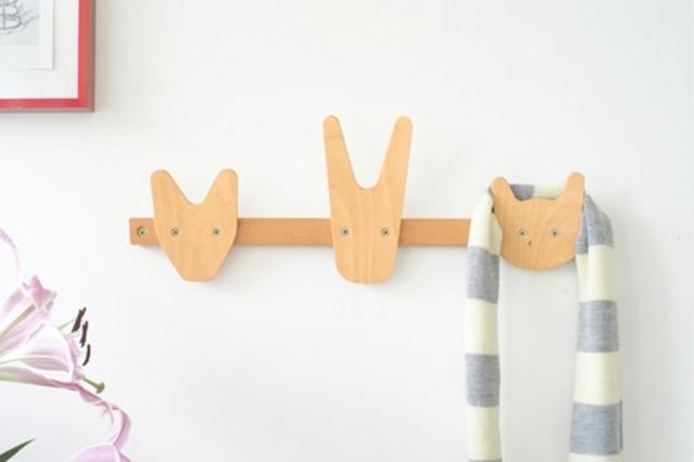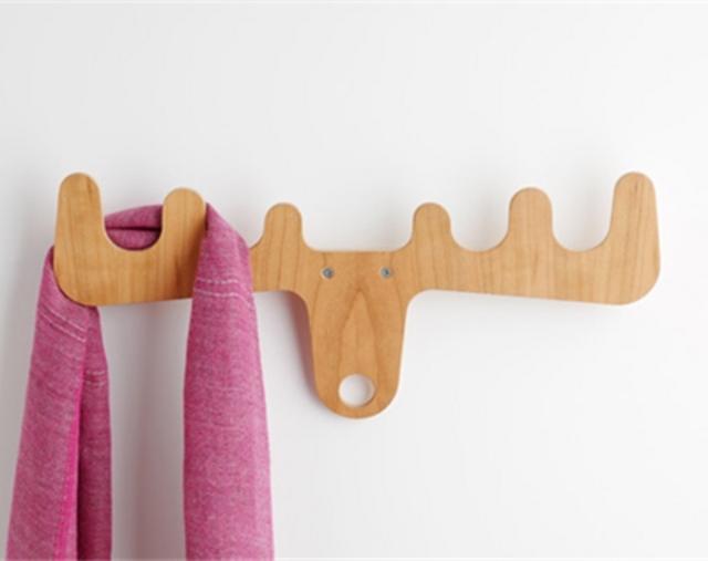 分别为恐龙状沙拉叉,榉木制成的猫咪、兔子、狐狸形象的衣服挂钩,小熊造型的镜子,纽扣状衣服挂钩,木球浴室拉绳,驼鹿外形的衣服挂钩。
