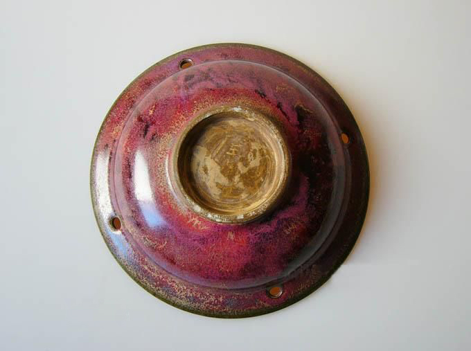 钧窑瓷器是北宋时期出现的一种最特殊的青瓷,它的前身,显然是唐鲁山窑花釉瓷器,钧窑窑变的特殊 性,除了在于强还原焰下呈现的铜从2价还原到0价而出现的姹紫嫣红外,特殊的釉面结构也影响到它的显色,一般来说,钧窑的釉区别于其他窑口青瓷的最大之处,是它的釉结晶结构,呈现一定的纤维状,如果你用放大镜观察钧窑瓷器的釉面,不难发现,这种纤维状结构主要是显色部分,而纤维状结晶和玻璃状均质结晶(就是不显色部分)之间,有很大的气泡,这些气泡有不少突破釉面,造成钧窑瓷器釉面呈现橘皮棕眼状,这显然有助于光在釉面的散射,使得钧窑窑变颜色的层次感更加丰富,这一般是加入石灰碱的缘故,所以说,钧窑窑变的呈色,铜的还原反应是直接原因,而石灰碱入釉则是间接原因。