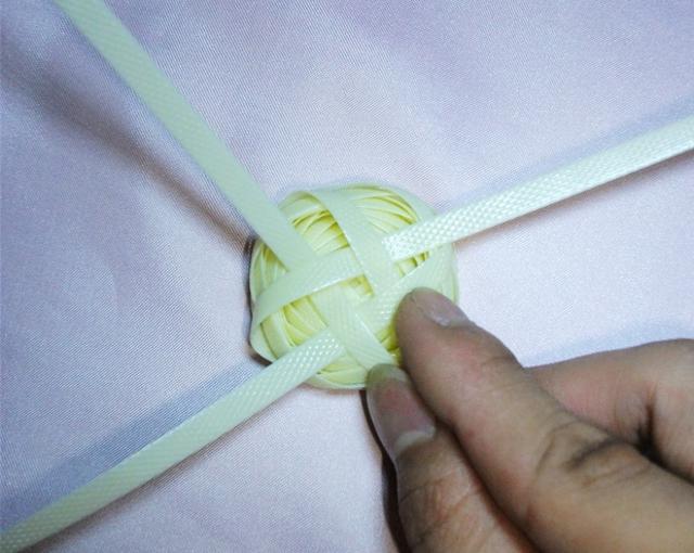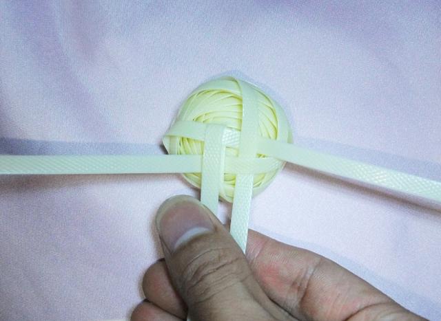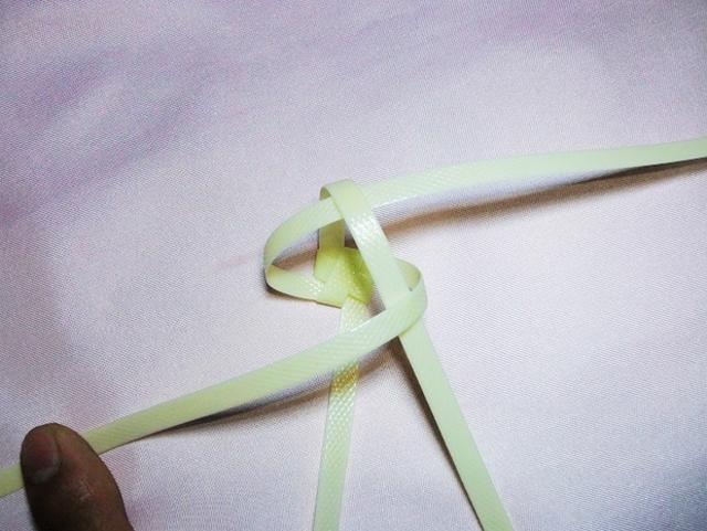 2、翻到背面,随便一条线压过旁边的那条(注意方向,现在是顺时针)