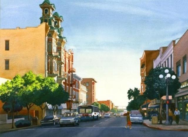 现在,描绘城市景观,历史建筑成了她的主要绘画内容。