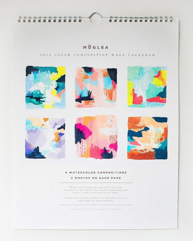 ▲插画家 Moglea 设计的抽象插画年历,虽然感觉没有主题性,却因为协调的色彩、可爱的手绘感笔法和每月不同的颜色主轴,让这款年历依旧非常适合挂在墙上。