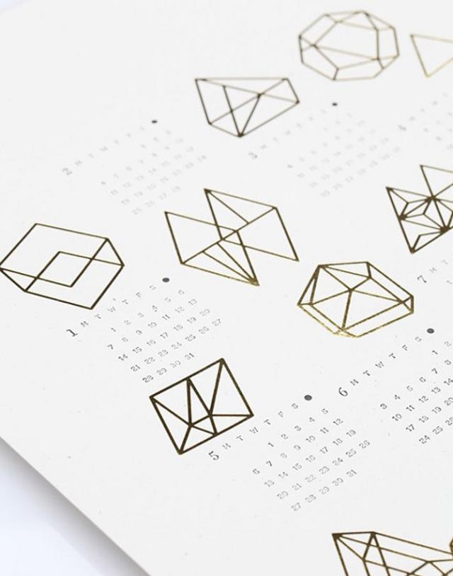 ▲喜欢几何宝石图形的朋友可以选择 Julia Kostreva 设计的凸版印刷:Prisms Calendar,上面的几何线条宝石图案采用了金色印刷,看上去有质感又值得收藏。