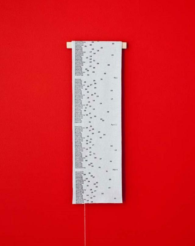 ▲毛衣一旦打结处开始松脱,就可以顺着线头一路把整件毛衣解开。利用这样的手法,设计师 Patrick Frey 设计了一款用拉线的方式阅读日子的年历,每过一天你就可以把当天的织线拉掉。