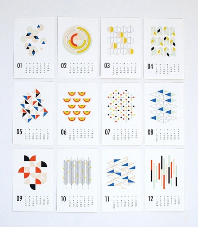 ▲由设计工作室 JP King 设计的几何图案年历,使用的是厚磅数纸卡设计,且纸张采用带有旧旧黄褐色的素材,加上简单的图案设计,整体风格很是复古喔。